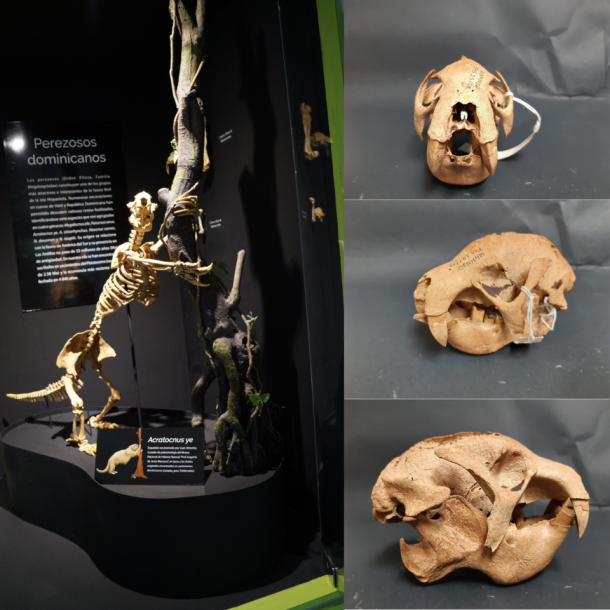 En la Sala Historia de la Vida de nuestro Museo tenemos en exhibición un esqueleto de la especie Acratocnus ye, reconstruido a partir de restos recuperados en excavaciones realizadas en cuevas secas de la provincia Pedernales. Te invitamos a verlo.