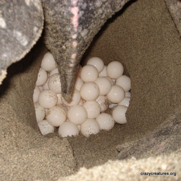 En sus nidos, las tortugas tinglar pueden poner entre 80 y 230 huevos, los que tienen un tamaño similar a una pelota de golf. Son redondos, de color blanco y una cubierta muy flexible.
