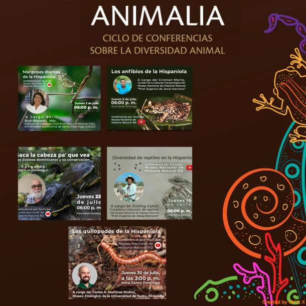 Mariposas diurnas, anfibios, reptiles, jicoteas y ciempiés de la Hispaniola en las conferencias de Animalia