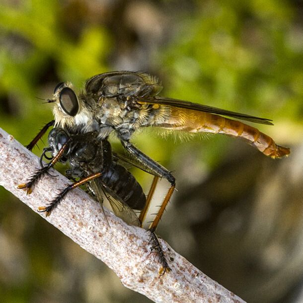 Las moscas de la familia Asilidae, comúnmente llamadas ‘’moscas asesinas’’, comprenden un grupo diverso de insectos del orden Diptera, caracterizadas por su comportamiento depredador y morfología a...